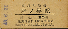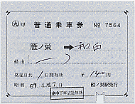 上記のような理由から、残念ながら当駅発行の乗車券類は存在するのかどうかさえ疑問視されており、仮に発行され現存しているとしても極めて数が少なく、恐らくほとんど市場(オークション等)には出て来ないと思われる。そこで、「もし存在するとしたらこんな感じでは?」という想像の下、左のような摸擬券を作ってみました。