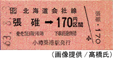 「確か海水浴シーズンだけは駅員がいましたが、駅舎ではなく2番ホーム(海側)に簡易ボックスみたいな物を設営して、そこに居たように記憶しています。駅舎はまったく使用していない感じでした。またその駅員が線路を渡る時に誘導してくれました。61年と62年には降りた時、簡易委託で乗車券の販売があり、購入いたしました。61年までが張碓駅発行、62年は小樽駅発行です。その後降りたのが、平成2、3年だと思うのですが海水浴シーズンではなかったので簡易委託の販売はありませんでした。何年まで売っていたかは分かりません。」