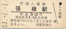 また、某HPによると、"張碓駅発行"と印刷された硬乗が昭和62年頃までどこかで発売されたことになっている。当時、道内では多くの"無人"駅で簡易委託乗車券が発売されており、@ 書類上の"無人化"後も、駅舎内で運転関係の駅員や民間の"駅務員"が引き続き勤務し、縮小した形で出札を行うケースと、A 駅前の商店などに近距離の片乗など(通常数種類まで)の発売を委託するケースがあるが、張碓駅の現状を考えると、いずれの場合もにわかには信じ難い。昭和62年頃までは集落側から駅に通じる道があったということも考えられるので、その辺の実情や現に実券をお持ちの方がおられましたら、是非情報をお寄せ下さい。