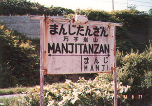 廃線が間近いという噂を聞き、この際"乗っておかねば"という使命感(?)もあって昭和58年の夏頃に訪問の機会を得た。実際に廃止されたのは2年後の春である。札幌から比較的近いので乗車プランは立てやすかった。気動車はすべて岩見沢始発着となっており、発車して間もなく一駅先の志文から万字線内に入る。栗沢町に入ると急に山が迫るようになり、幌向川沿いの細長い谷間をゆっくりと東へ進んで行く。中間の駅はどれも窮屈そうな感じで、どことなく寂しげだ。45分かけて終点の万字炭山に到着。周囲を山に囲まれ、付近に民家らしきものは見当たらなかったと思うが、近くに古い炭鉱住宅跡が残っているという記事をどこかで見た記憶がある。構内はものすごく広くてガランとしており、ホームに降り立つとかなり遠くに瀟洒な駅舎が見えた。なぜこんなに離れているのか不思議だったが、折り返し発車まで10分程度しかないのでとにかく走る。駅舎内もガランとしていたが、小さな出札口は健在で駅務員氏?が常駐している模様。既に入場券の発売はなく、日付印字機も改札鋏も置いていないとのことであったが、硬券の簡易委託券があるというので1枚売ってもらった。買っていくのは私のようなマニアばかりだという。