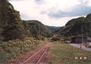 線路は駅舎を通り過ぎてもまだ車止めがなく、坑道とおぼしきトンネルへと続いていた。構内に車庫などはないようだが、時刻表をよく見るとこの駅が1日の終着と始発になっているので、ひょっとして夜間はこんな寂しい駅に気動車が停まったままになっていたのだろうか。