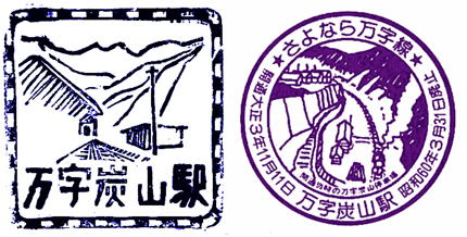 万字炭山駅に備えられていた駅スタンプ。右は廃止間際に設置されたもので、左は「マニアからの寄贈」によるものという。