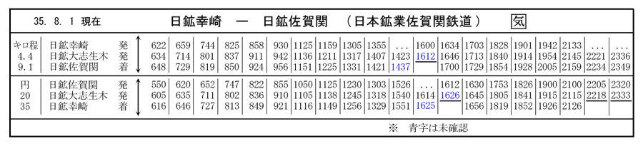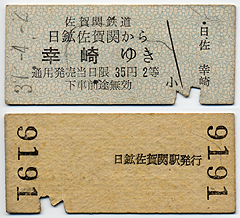 なお、本駅の正式名称については「日鉱幸崎」ではなく単に「幸崎」だったと証言する方もおり、目下調査中。(5.佐賀関鉄道の乗車券類 (1) 普通乗車券 の注)*1参照)