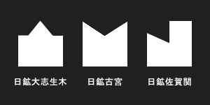 日本鉱業の社章は古くから"赤字太筆のマル"・通称「蛇の目(ジャノメ)」(左)が使用されており、略称は「日鉱(にっこう)」。以前は「N.K.K.」の略号も好んで使われていたが、製鉄大手の"日本鋼管"と紛らわしかったためか、現在ではほとんど目にすることはない。