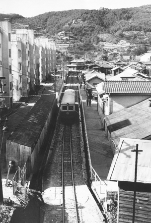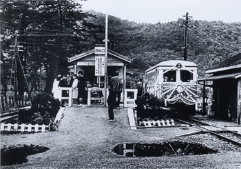 昭和38年5月15日の廃止当日は小雨で、関係者が見守る中、午後1時から日鉱佐賀関駅で閉業セレモニーが催され、"廃止記念列車"も走って、多くの町民が最後の別れを惜しんだという。左は「佐賀関鉄道おわかれ記念」のデコレーションが施された"ケコキハ512"気動車(笹葉弘子氏所蔵)。