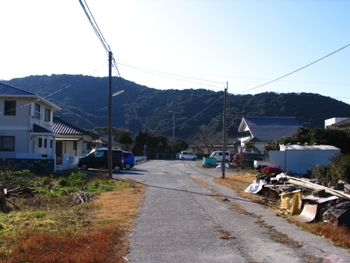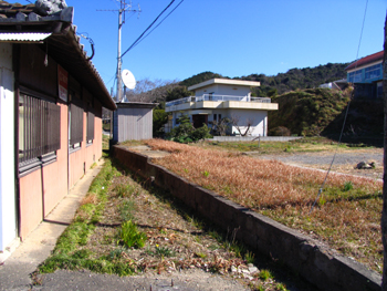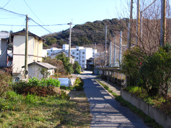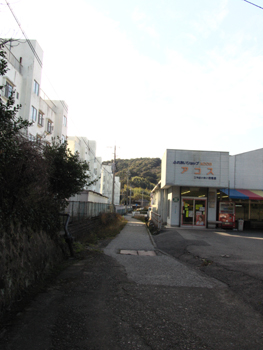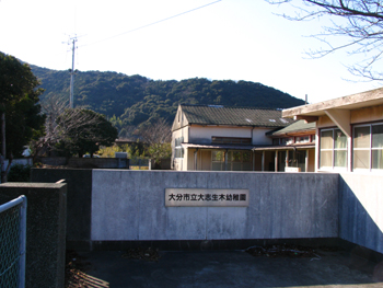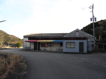 右下: かつて日鉱大志生木社宅内にあった"こうばいかい"の建物。佐賀関製錬所は合理化により従業員を大幅に削減した結果、平成に入った頃からは大志生木社宅に空室が目立つようになり、現在では10棟程もあったアパート群はすべて撤去されて、すぐ横にある"大志生木小学校"の児童も激減したという。製錬所社員家族向けの小型マーケット「こうばいかい(購買会・理事長は佐賀関製錬所総務課長兼務)」志生木店も"ゴーストタウン"の中で細々と営業を続けていたが、ついに数年前閉店となった。社宅の跡地は今のところ製錬所総務課が管理しているが、近々、辛幸地区にある特別養護老人ホームが移転してくる予定だという。