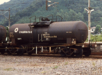 右は、かつて幸崎駅の貨物側線に留置されていた日本鉱業所有の濃硫酸専用タンク車(タキ5750形・昭和61年撮影)。本鉄道は他にナロー用のタンク車(ケタム5など)も所有していたが、詳しくは専門誌のほうを参照されたい。