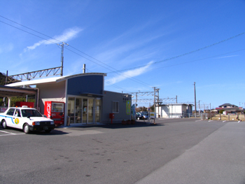 ホームの裏手は、国鉄駅舎との間に国鉄社線共用のトイレがあったことがわかっている。図中の建物3〜5は昭和49年撮影の航空写真でも確認できる他、建物2は前述のDVDにも写っているが、これらは駅関係の施設なのかどうかはよくわからない。また、建物1はやはりDVDの映像で確認できるが、単に撮影角度の問題で、これが共用便所の建物とも考えられる。なお、元車掌の方の証言によると「昭和20年代初期はホーム?が国鉄線路から若干離れた場所にあったような気がする」とのことで、開業当初は駅の構造が全く違っていた可能性もある。