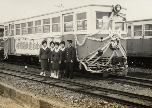 職員の中で特筆すべきは"車掌"で、今回お世話になった方(昭和37〜38年在籍)の回想によると、当時は全員が23歳以下の女性、白手袋に洒落た制服、"ジャノメ"マークが入った"ギャリソンキャップ(米軍)"風の制帽を着用し、車内業務全般の他、車輌の連結・切り離し(入れ換え)作業まで担当した。列車乗務は通常2名1組で各車輌を担当し、後方車掌が安全確認・出発合図を行って、前方車掌が"笛"を吹いたという。但し、全員若い女性だったため、労働基準法の問題から夜10時を過ぎる業務ついては、列車乗務も含めて他部署の男性職員が代行した。