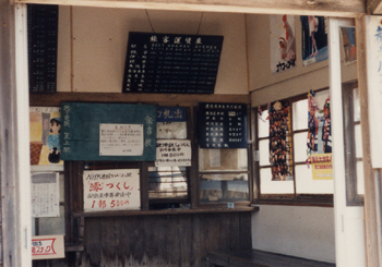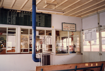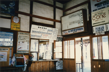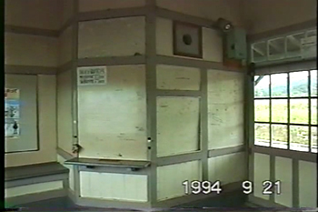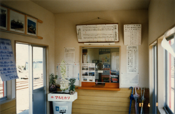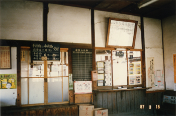 ほぼ中央が出札口跡、左側の一段低くなっている場所がチッキの窓口跡と思われる。豪雪著しい山間の僻地にあったため、道路が整備されるまでは結構利用されていたのではないだろうか。このような"趣深い滋味ある駅舎"が姿を消していくことは本当に残念でならない。