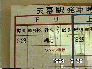 * 平成6年9月22日 天幕駅に停車する網走行普通列車(無音声動画14秒)(tenmaku.mpg/2.00MB)