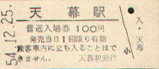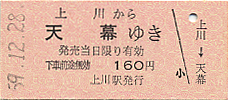 上川駅発行の天幕ゆき普通片道乗車券(昭和59年発行)。券番は"0125"で、ほとんどマニアだけが講入していたと思われる。