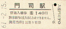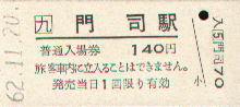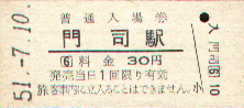 10円券までは横中央に朱線が1本入ったデザインで、通称”赤線入場券”と呼ばれていますが、昭和41年頃(20円券)からは全くの無地紋となって、その後現在のように小児断線が入ったのは昭和44年11月改正(30円券)からです。30円券からしばらくは下・左図のような様式が続きましたが、80円券以降(昭和53年7月改正頃から)、門司印刷場の初期と大阪印刷場の券を除いて、現行券のように駅名部分を最上段とするデザインに変わりました。また、民営化後は、駅名部分の左肩にJR各社を識別する□マークが付いたりしましたが、全体的にはほぼ国鉄時代のままです。
